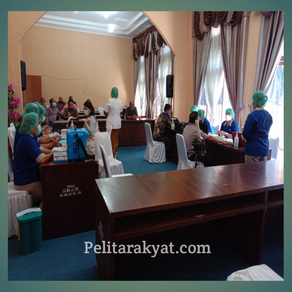 PAKPAK BHARAT, Pelitarakyat.com- Vaksinasi Corona atau COVID-19 bagi anggota DPRD Pakpak Bharat hingga tenaga pendukung DPRD Pakpak Bharat dilanjutkan hari ini. Para peserta vaksinasi terpantau Duduk menunggu giliran disuntik vaksin.