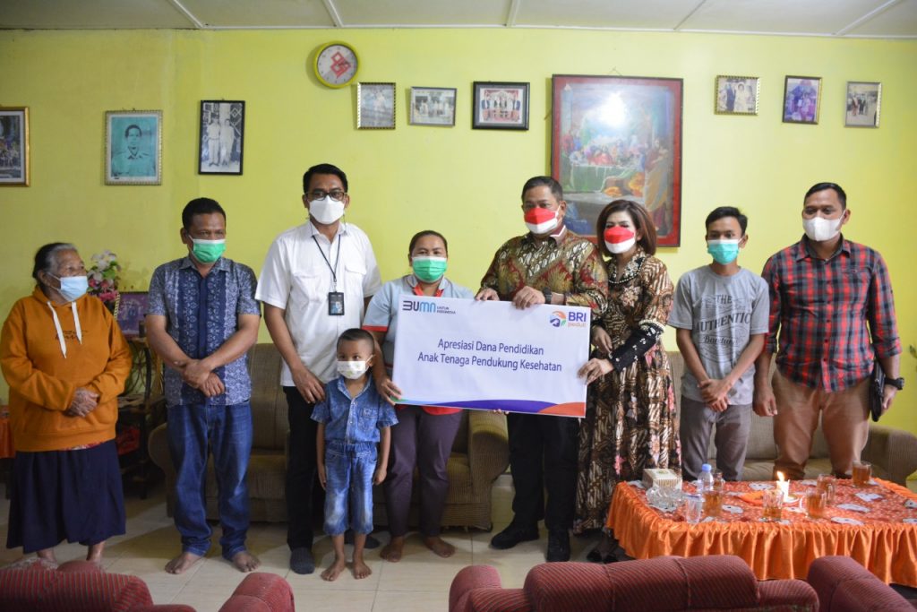 SIDIKALANG, pelitarakyat.com – Bupati Dairi Dr. Eddy Keleng Ate Berutu mengapresiasi Bank Rakyat Indonesia (BR) cabang Sidikalang yang memberikan bantuan dana pendidikan anak kepada 20 orang tenaga pendukung kesehatan/medis RSUD Sidikalang. Apresiasi tersebut disampaikan oleh Bupati Dairi Eddy Berutu langsung kepada salah satu tenaga pendukung kesehatan di kediamannya jalan runding, Sidiangkat pada Selasa (17/8/2021). Turut hadir dalam pemberian apresiasi tersebut Ketua Tim Penggerak PKK Kabupaten Dairi Ny. Romy Mariani Eddy Berutu, Pimpinan BRI Cabang Sidikalang Agung Prasetyo dan Direktur RSUD Sidikalang dr. Sugito Panjaitan.