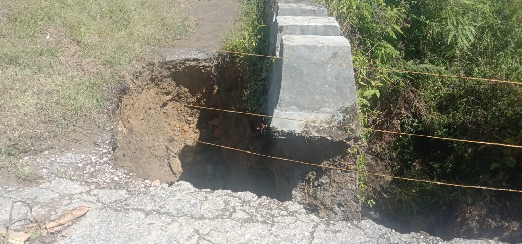STTU JULU, Pelitarakyat.com- Warga mengeluhkan kondisi jalan rusak dan tembok penahan Gorong-gorong di lokasi dekat simpang menuju kantor Camat STTU JULU yang longsor. Pengguna jalan yang melintas harus selalu berhati-hati lantaran musim hujan terus mengguyur wilayah Pakpak Bharat.
