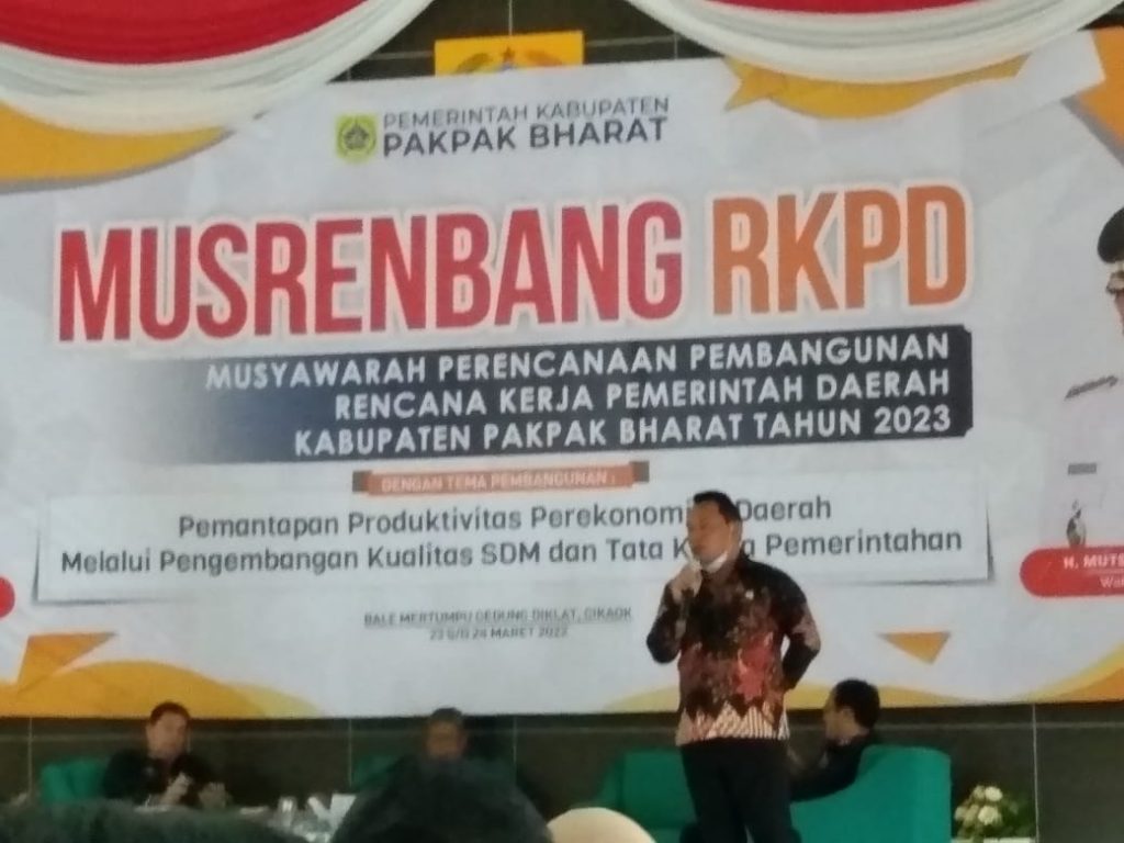 CIKAOK, pelitarakyatcom – Kepala Dinas Pertanian Pakpak Bharat Jabendeus Banjarnahor menjawab pertanyaan warga pada Musrembang RKPD soal alat pengering jagung di Tinada.