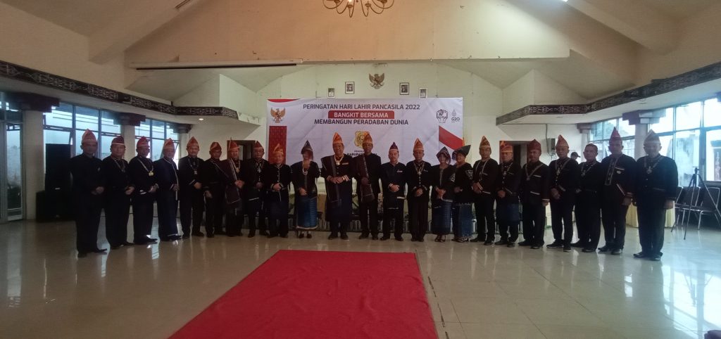 Bupati bersama Undangan dan Jajaran Berpakaian Adat Pakpak dalam memperingati hari Pancasila di Gedung Balai Budaya Sidikalang, mengikuti acara Virtual bersama Presiden Republik Indonesia.