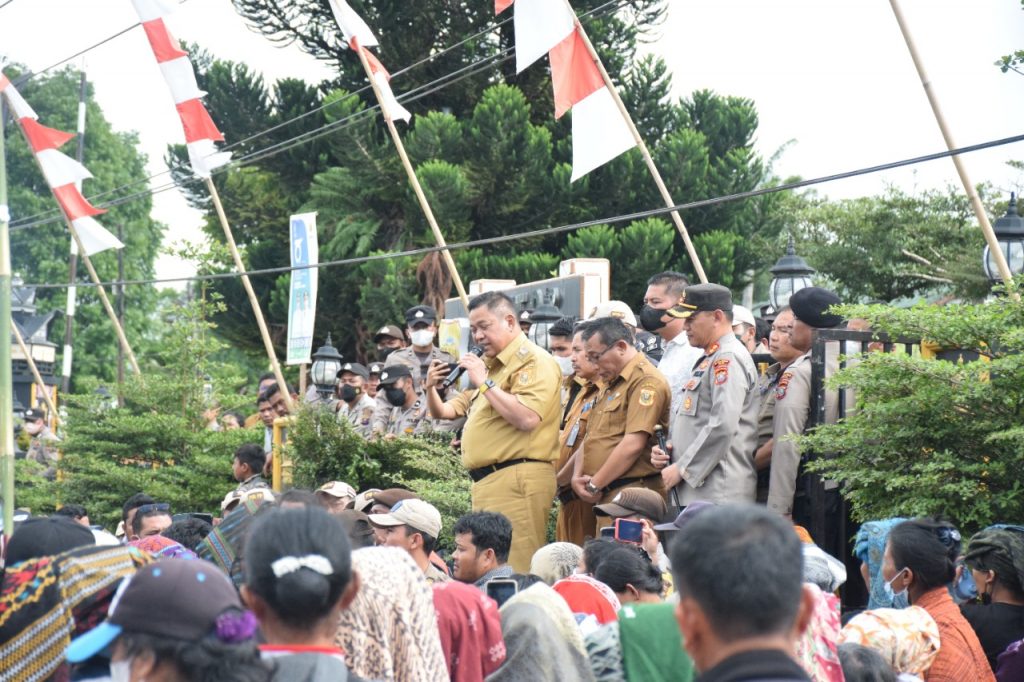 “Saya sudah mendapat laporan dari asisten, dan pak Sekda tentang adanya inang, amang yang ingin berjumpa dengan saya. Pertama, saya menghargai sepenuhnya inang-inang datang ke sini jauh-jauh dari dari beberapa kecamatan tentu dengan satu niat yang baik. Jadi saya mengucapkan terima kasih atas niat itu, saya mendapatkan aspirasi dari amang, inang,” katanya.