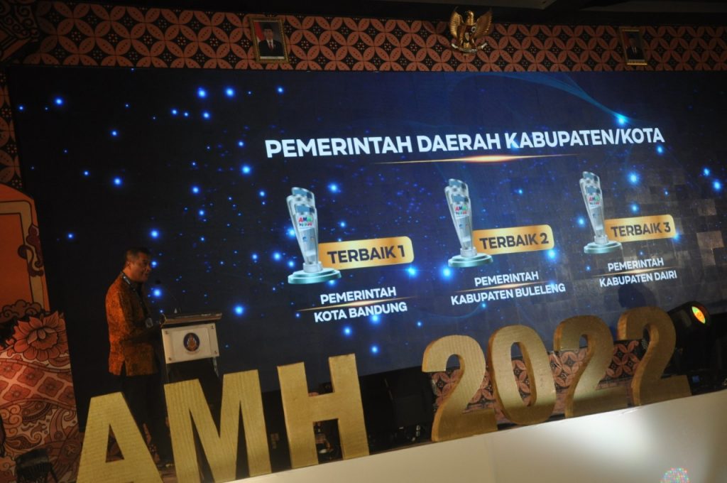 Ia kemudian membacakan juara terbaik kedua direbut oleh Pemerintah Kabupaten Buleleng. Dan untuk terbaik pertama adalah pemerintah Kota Bandung.
