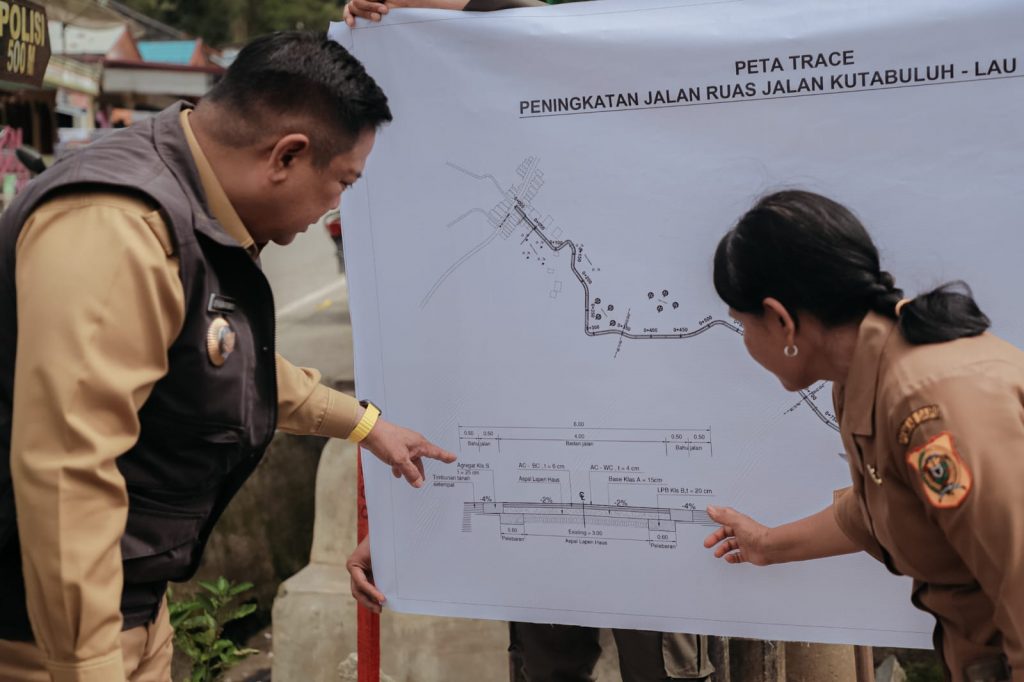Bupati mengajak kepala PUPR ke Lau Primbon untuk sama-sama memasang patok tanda dimulainya pembangunan ruas jalan jurusan Kuta Buluh – Lau Primbon.
