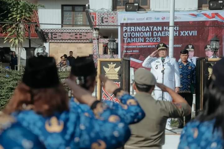DAIRI, pelitarakyat.com- Mengambil tema “Otonomi Daerah Maju Indonesia Unggul”, Pemerintah Kabupaten Dairi melaksanakan Upacara Peringatan Hari Otonomi Daerah ke-XXVII tahun 2023 di halaman Kantor Bupati Dairi, Sidikalang, Sabtu (29/4/2023).