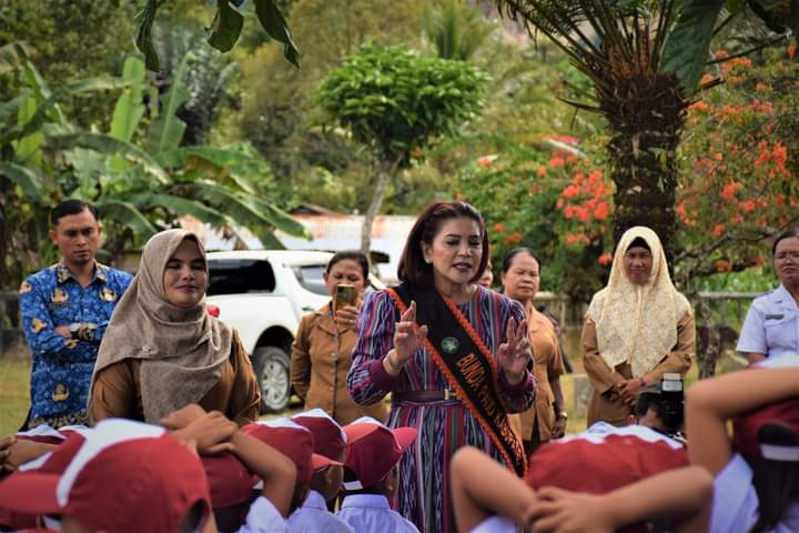 DAIRI, pelitarakyat.com- Hari Pertama Sekolah, Bunda PAUD Kabupaten Dairi, sekaligus Bunda Literasi, Romy Mariani Simarmata- Ny.Eddy Berutu melakukan sosialisasi sekaligus monitoring penerapan program transisi PAUD ke SD yang menyenangkan di 4 sekolah di 2 kecamatan di Kabupaten Dairi, Senin (17/7/2023).