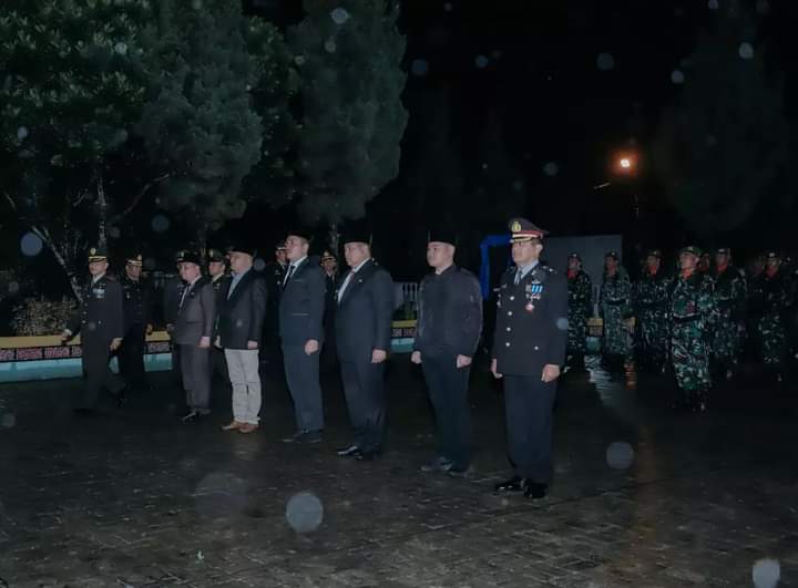 DAIRI, pelitarakyat.com- Hujan deras menjadi saksi prosesi Apel Kehormatan dan Renungan Suci di Taman Makam Pahlawan (TMP) Sidikalang, Kamis (17/8/2023), Pukul 00.00 WIB.