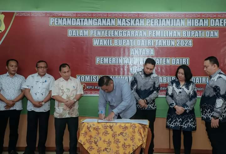 Penandatanganan tersebut dihadiri langsung Bupati Dairi Eddy Keleng Ate Berutu dan Ketua KPU Dairi Freddy Sinaga.