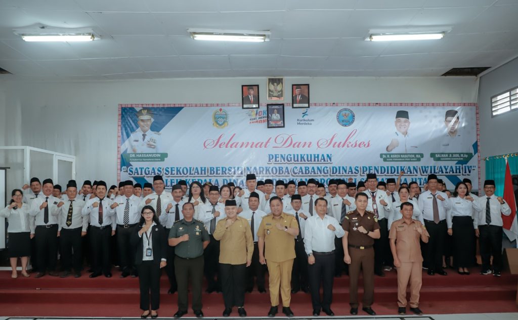 DAIRI, pelitarakyat.com- Bupati Dairi Dr. Eddy Keleng Ate Berutu bersama Kepala Dinas Pendidikan Provinsi Sumatera Utara Dr. H. Asren Nasution melaksanakan pengukuhan Satuan Tugas (satgas) Sekolah Bersih Narkoba Cabang Dinas Pendidikan Wilayah IV, di SMK Negeri l Sidikalang, (14/11/2023).