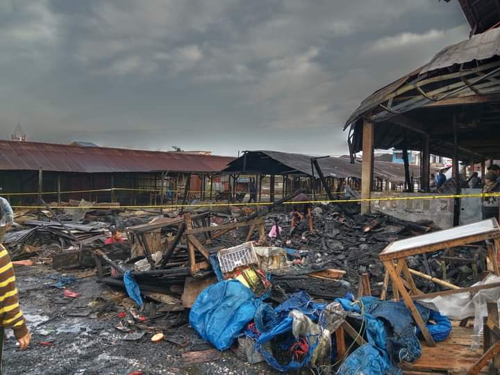 DAIRI, PELITARAKYAT.COM- Areal Blok C Pajak Sidikalang di Kecamatan Sidikalang, Kabupaten Dairi, Sumatera Utara, terbakar, Kamis (25/1/2024) dini hari sekitar pukul 00.56 WIB. Akibat peristiwa itu, diperkirakan kurang lebih 20 lapak kios tempat usaha pedagang, musnah terbakar.