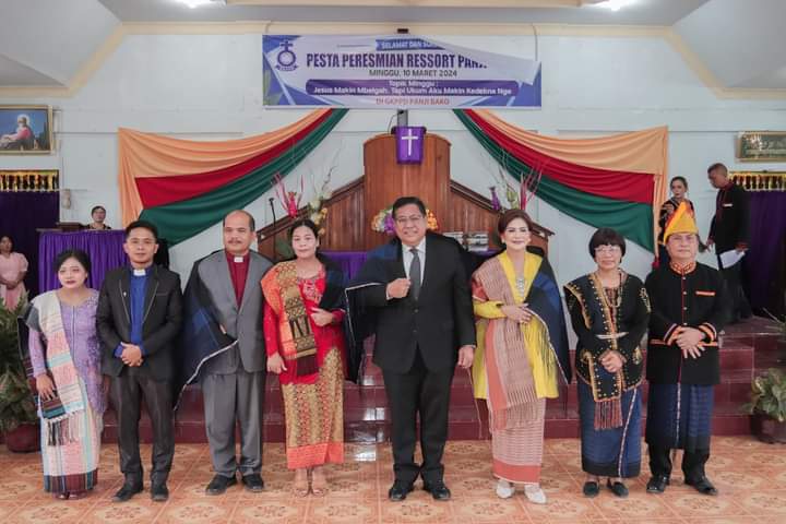 DAIRI, PELITARAKYAT.COM – Bupati Dairi, Dr. Eddy Keleng Ate Berutu didampingi Ketua Tim Penggerak PKK Kabupaten Dairi Romy Mariani Eddy Berutu mengisi hari Minggu kali ini dengan meresmikan resort Gereja Kristen Protestan Pakpak Dairi (GKPPD) di Kecamatan Sitinjo, Panji Bako, 10 maret 2024.