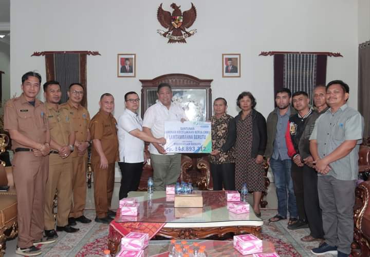 Santunan diserahkan oleh Kepala BPJS Ketenagakerjaan Wilayah Sumatera Bagian Utara (Sumbagut) Cabang Kabanjahe, Dinarta Tarigan kepada ahli waris, Pardomuan Berutu dan Riama Simbolon yang disaksikan oleh Bupati Dairi Dr.Eddy Keleng Ate Berutu di Pendopo bupati, Senin malam (25/3/2024).