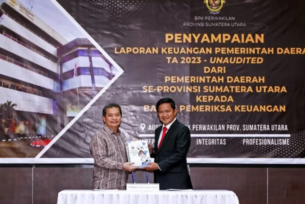 Hal tersebut disampaikan Penjabat Gubernur Sumatera Utara Hassanudin usai menyerahkan LKPD Unaudited Tahun Anggaran 2023 di Kantor Badan Pemeriksa Keuangan (BPK) RI Perwakilan Sumut, Medan, Kamis (28/3/2024).