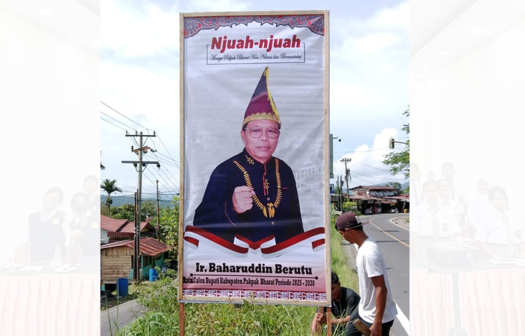 MEDAN, pelitarakyat.com – Baliho Ir Baharuddin Berutu terpampang di sejumlah titik di Pakpak Bharat. Baliho tersebut, menampilkan Ir Baharuddin Berutu dengan mengenakan pakaian adat pakpak lengkap dan tulisan njuah-njuah.