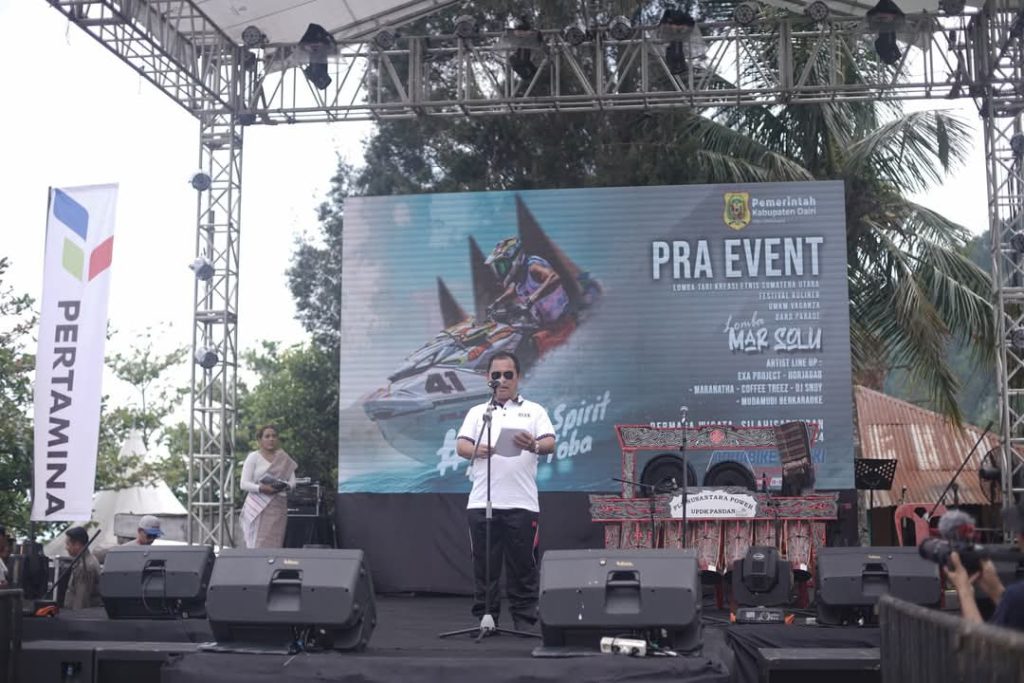 PELITARAKYAT. COM – Pj Bupati Dairi Surung Charles Lamhot Bantjin mempromosikan potensi Kabupaten Dairi melalui sambutannya dalam Event Aquabike Jetski World Championship di Dermaga Silahisabungan, Kamis (14/11/2024).