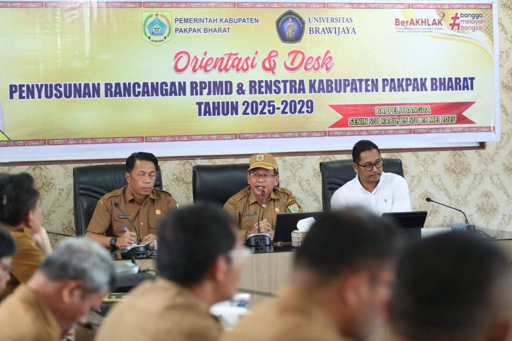 PELITARAKYAT.com – Sekretaris Daerah Pakpak Bharat, Jalan Berutu, S.Pd, MM membuka pelaksanaan Orientasi dan Desk Penyusunan Rancangan Pembangunan Jangka Menengah Daerah dan Rencana Strategis Kabupaten Pakpak Bharat Tahun 2025-2029.