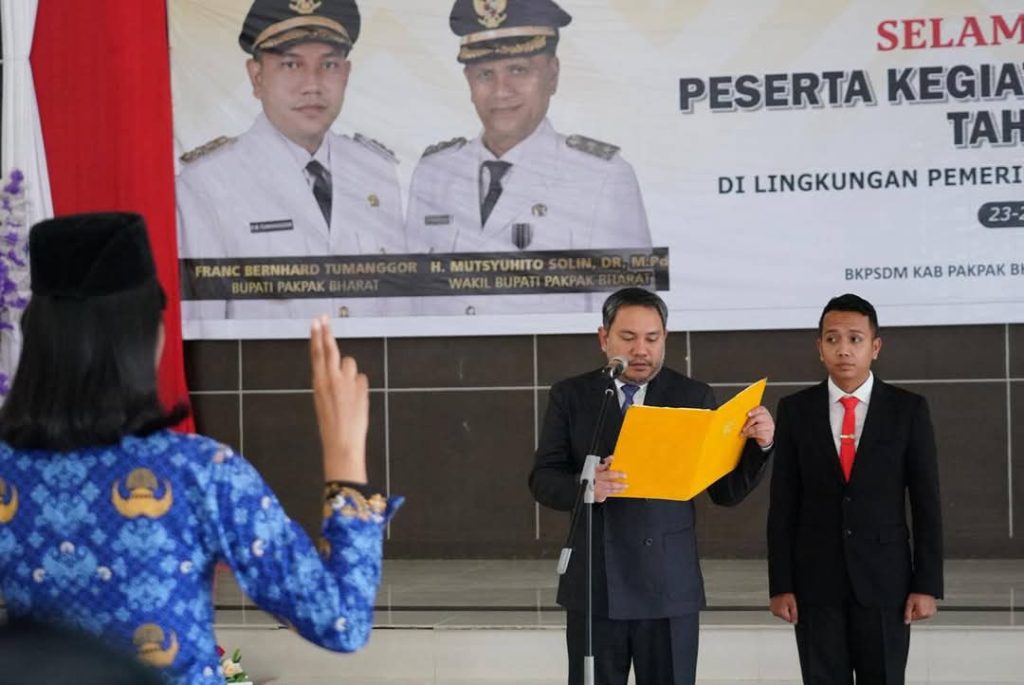 SALAK, pelitarakyat.com- Bupati Pakpak Bharat, Franc Bernhard Tumanggor hari ini menutup pelaksanaan Orientasi Bagi Pegawai Pemerintah dengan Perjanjian Kerja (PPPK) dilingkungan Pemerintah Kabupaten Pakpak Bharat. Dalam acara yang digelar di Aula Balai Diklat BKPSDM Pakpak Bharat, desa Cikaok ini, Franc Bernhard Tumanggor berpesan bagi 295 orang tenaga PPPK ini, agar senantiasa bersinergi dengan Visi dan Misi Pemerintah Kabupaten Pakpak Bharat.