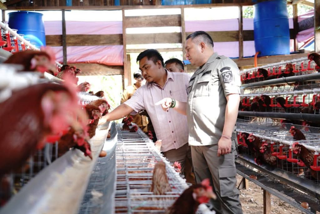 PAKPAK BHARAT, pelitarakyat.com- Bupati Pakpak Bharat, Franc Bernhard Tumanggor mengunjungi peternakan ayam petelur milik Badan Usaha Milik Desa Arih Mersada di desa Penanggalan Binanga Boang. Ayam-ayam petelur ini tumbuh sehat dan kini mulai menghasilkan telur-telur berkwalitas baik.