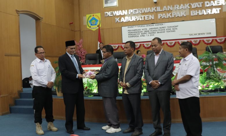 PAKPAK BHARAT, pelitarakyat.com- Wakil Bupati Pakpak Bharat, H Mutsyuhito Solin, Dr, M.Pd membacakan pidato Nota Jawaban Bupati Pakpak Bharat atas Pemandangan Umum Fraksi-Fraksi terhadap Nota Pengantar RAPBD Pakpak Bharat 2026. Diawal pidatonya, Mutsyuhito Solin menyampaikan belasungkawa dan rasa prihatin atas bencana alam tanah longsor yang terjadi di berbagai wilayah Kabupaten Pakpak Bharat.